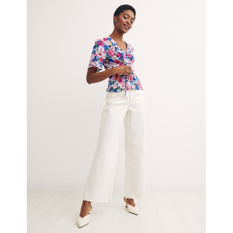 Let your top do the talking in our romantic Beatrice blouse. Featuring bright florals all over, it's framed by short sleeves, a classic V-neckline and corset ties on the front. Team with trainers and jeans for dressed-down days.