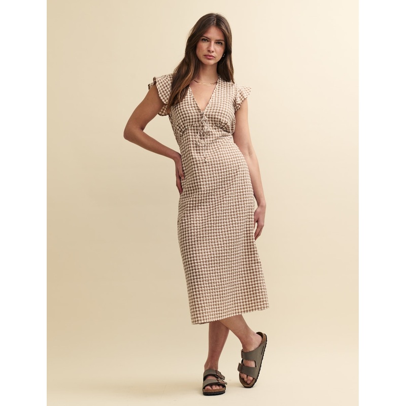 Slip Lily on and youre ready in an instant. Shes detailed with ruffle sleeves, a lightly fluted hem and ties at both the front and back. Were wearing ours with chunky slides. Trust us: shes a keeper.