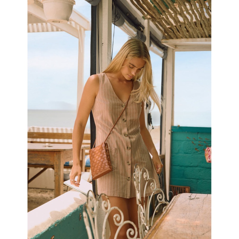 Be the first to review “Beige Pinstripe Claudette Pinafore Mini Dress”