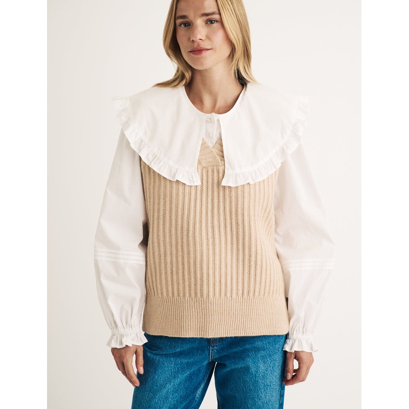 Calling all cool girls, weve got your new autumn essential in a soft shade of biscuit. A low v-neck and ribbed detailing elevate a cosy staple to a so-now style statement. Style yours with everything you already own.V-neckRibbed trimsDesigned for a relaxed
