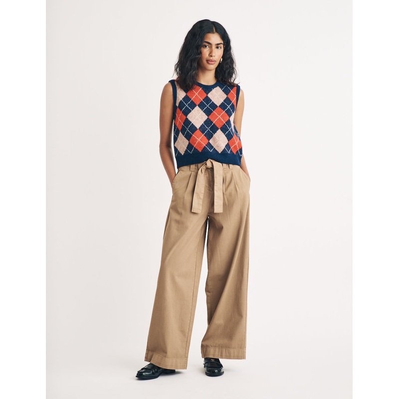 It’s all in the details. These beige trousers sit high on the waist with a double pleat front, a stylish wide leg and a so-now belt detail. Switch between retro trainers or barely-there heels.