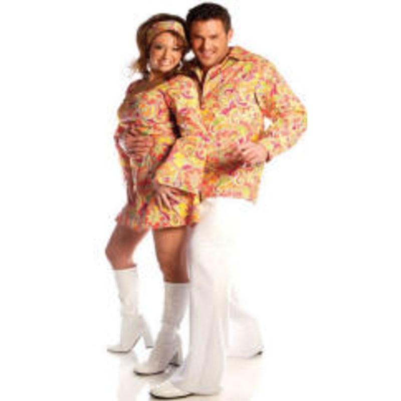 Includes: Elastic waist bell bottom pants.Color: White (shown)Size: One Size (Waist 32-40)