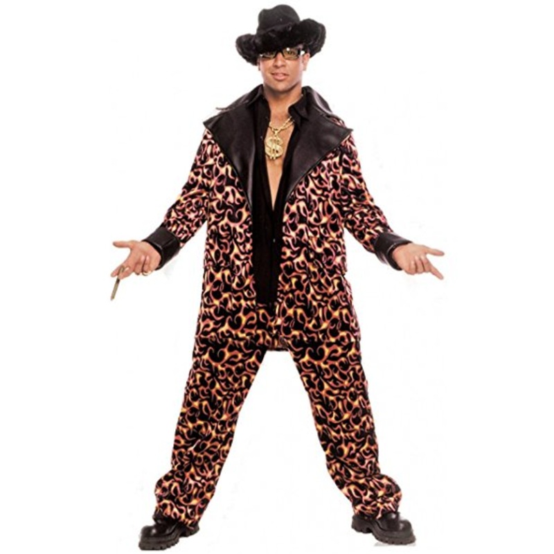 Includes: Flame print baggy jacket w/black vinyl trim & matching pants.Color: Brown (shown)Size: XL (48)
