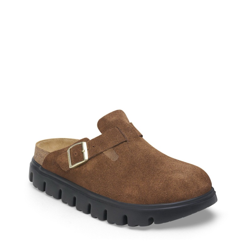 Birk Suede Boston Chunky Clog-dark tea/black