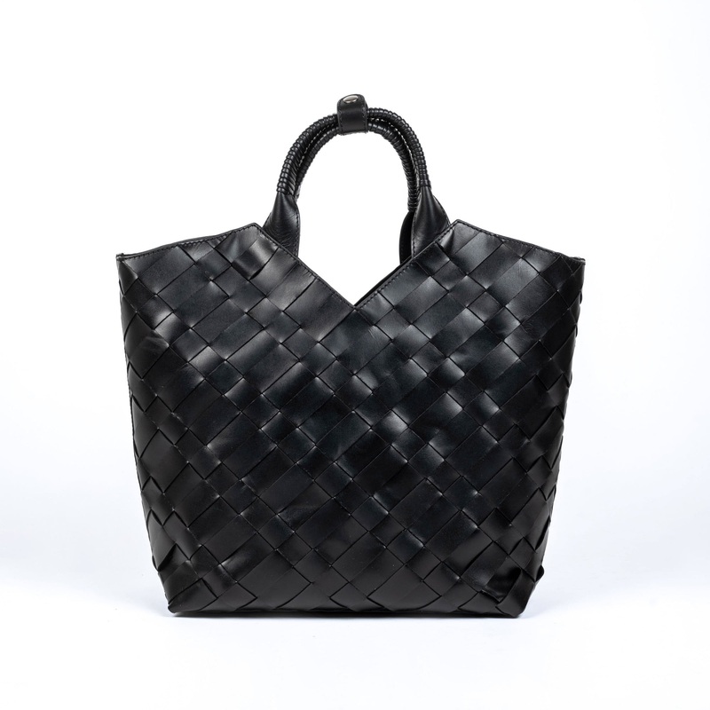 Designed for every day. Aleos Cabas shopper comes in versatile black designed in an intricate handwoven box weave. With a detachable cotton insert, it closes with a magnetic clasp and drawstring. With both a leather handle and additional shoulder straps, y