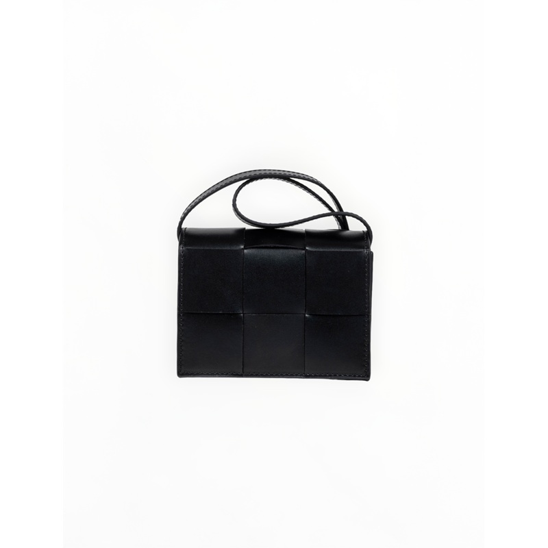 Carry your essentials in style. Aleos mini matchbox bag comes in classic black and is designed in a handwoven box weave. With cotton lining, it closes with a single magnet. Style it with all your NC outfits.