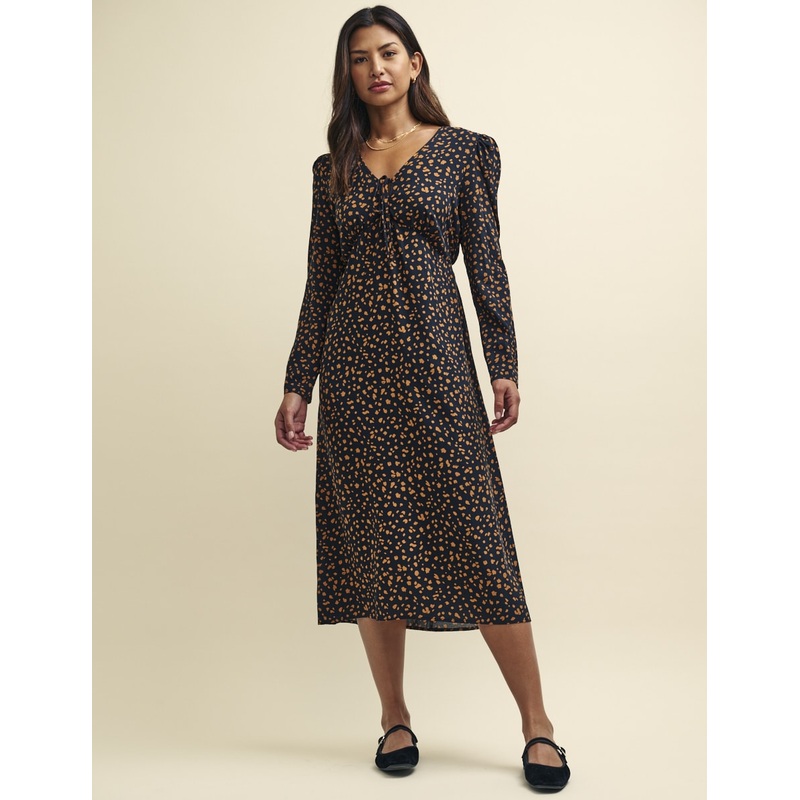 Lilys ready for that thing youve got to go to this autumn. Designed with long sleeves, shes detailed with a lightly fluted hem and ties at both the front and back. We love that shes dotted with an artful smudge print. Just add Mary Jane shoes.