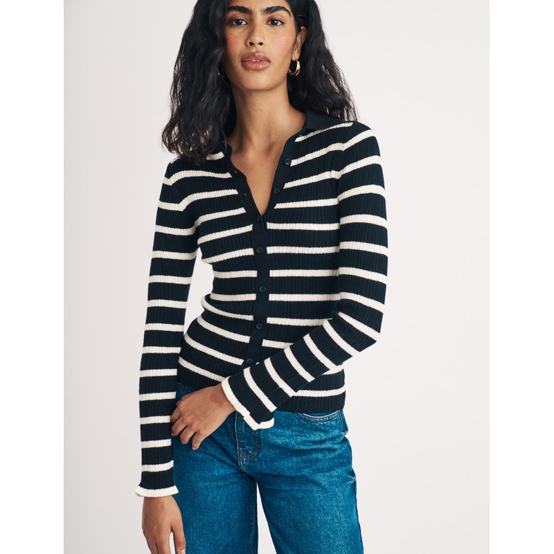 Your new go-to. Featuring a collar, button front and a soft ribbed texture, youre sure to wear it week after week. Style yours with denim, boots and gold jewellery.