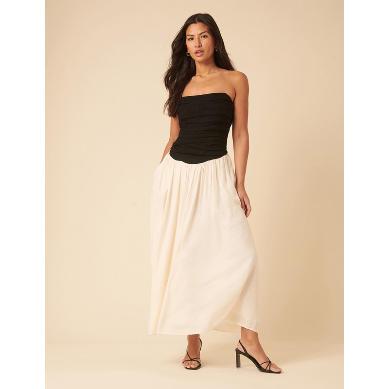 Square neck Optional spaghetti straps Pleated bodice Size tip: we recommend your usual size