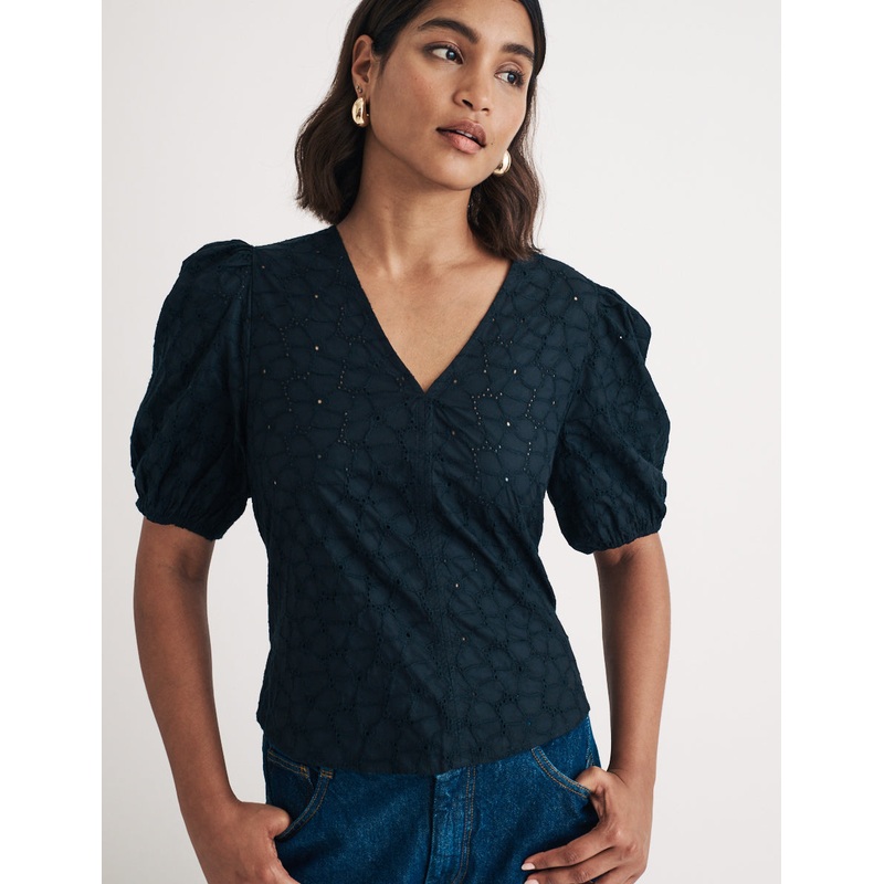 Black Broderie Anglaise Puff Sleeve Top