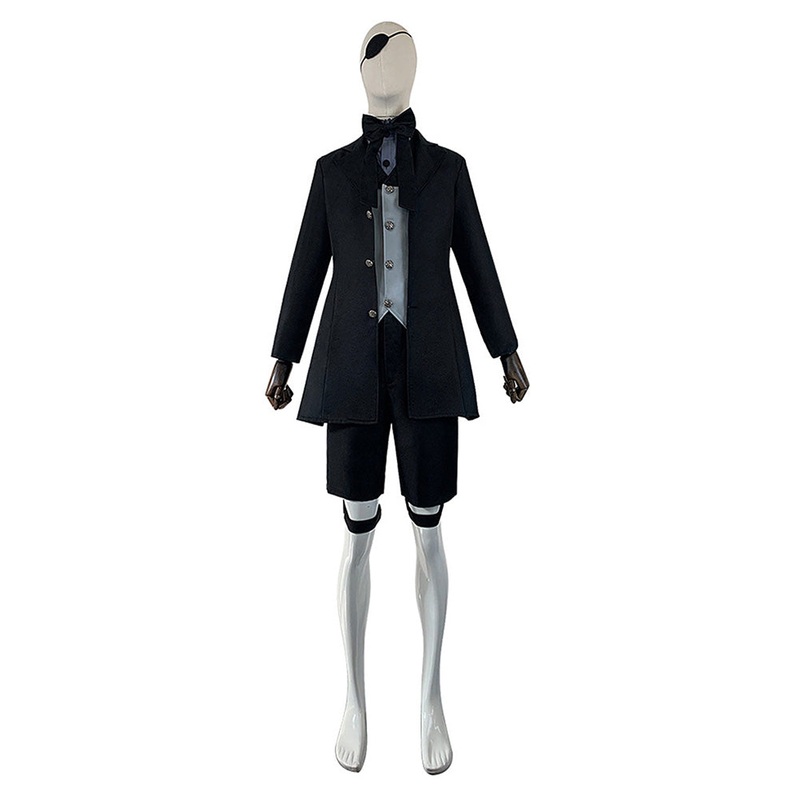 Black Butler SebastianMichaelis Cosplay Costume Outfits Halloween Carnival Suit Material: Uniform Cloth Package included: Top + Vest + Shirt + Necktie + Eyemask + Bandage + PantsSize cmCoat LengthSleeve LengthShoulder WidthBustPants LengthWaistHeightS78493