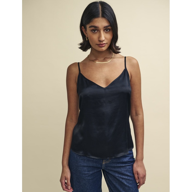 Every wardrobe needs a black cami with barely-there straps. The super soft satin that this top has been crafted with is perfect for dressing up or down. Style it solo or under a blazer.