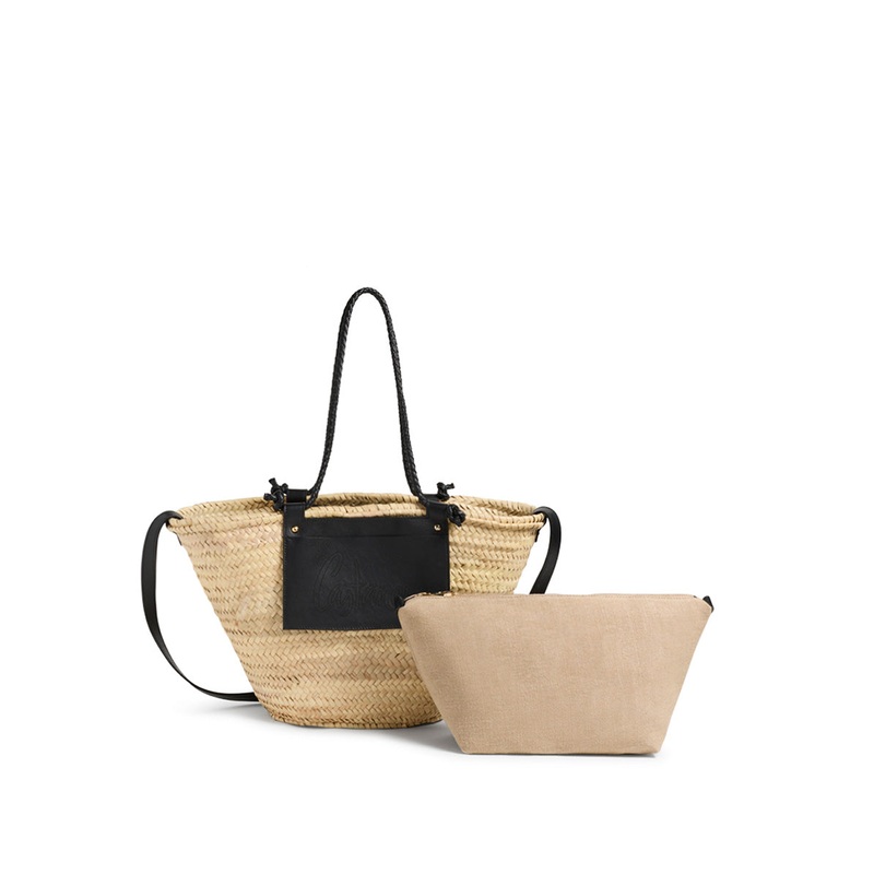 Your summer bag, sorted. Crafted from woven natural raffia, this Castaer basket bag features black accents, braided top handles, and a single shoulder strap – wear it your way.
