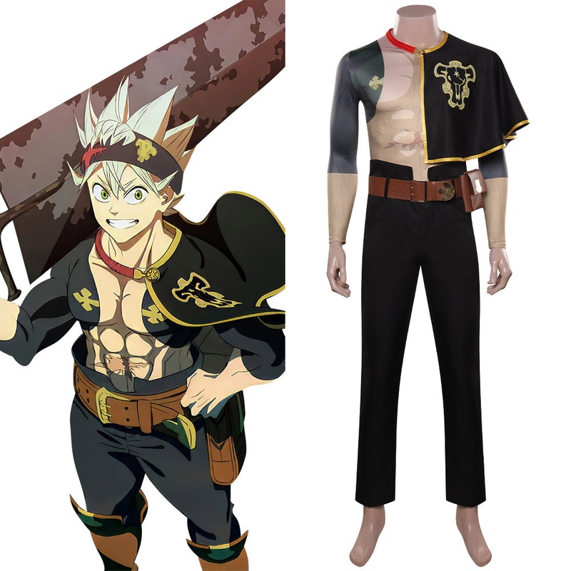 Black Clover: Sword of the Wizard King Asta Outfits Halloween Carnival Party Suit Cosplay Costume MaterialThickiy Ronior Fabric + Milk Protein Fiber + Spunlace Package included: Top + Headband + Cloak + Belt + Pants