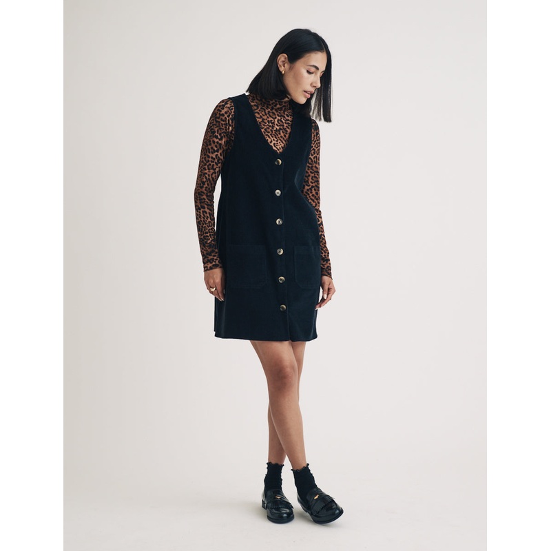 Meet Claudette: the latest black cord pinny to join the NC fold. She buttons up at the front with patch pockets and a flattering v-shape neckline that can be styled solo or layered. Team yours with your favourite turtle neck.V-neckPockets