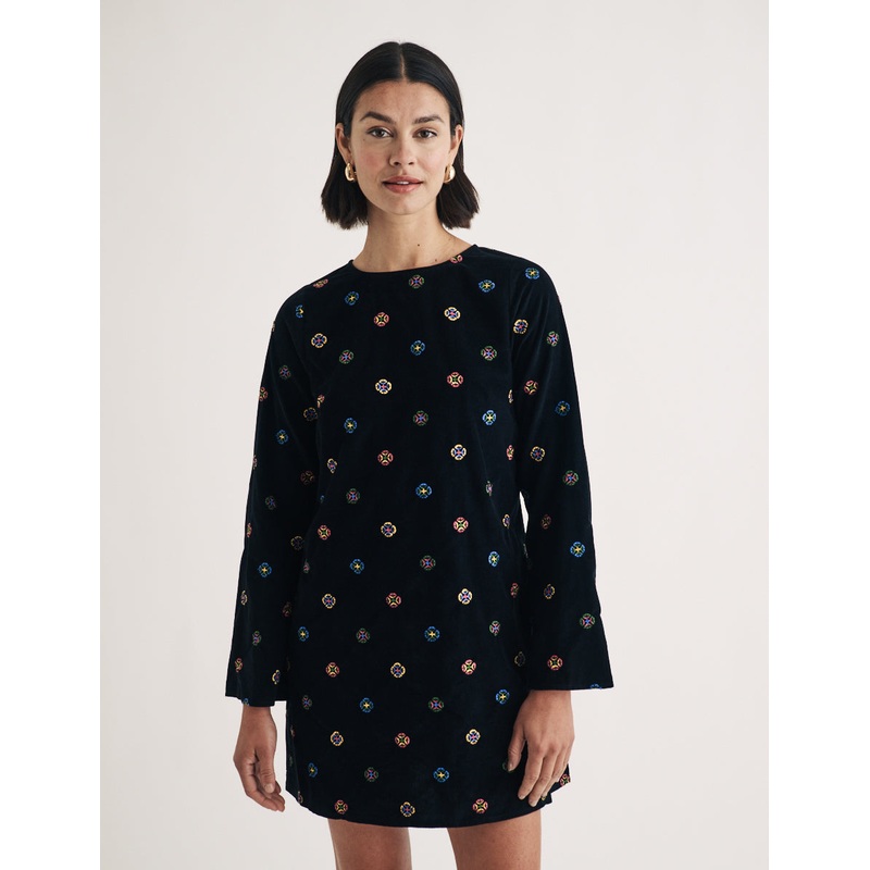So classic, so-now. Your new little black dress is a cord number thats blooming with artful embroidery. Balanced by elegant long sleeves, this shift dress silhouette is a comfortable option that looks good and feels good too. You have the relaxed fit to thank for that. Wear with your favourite black boots.