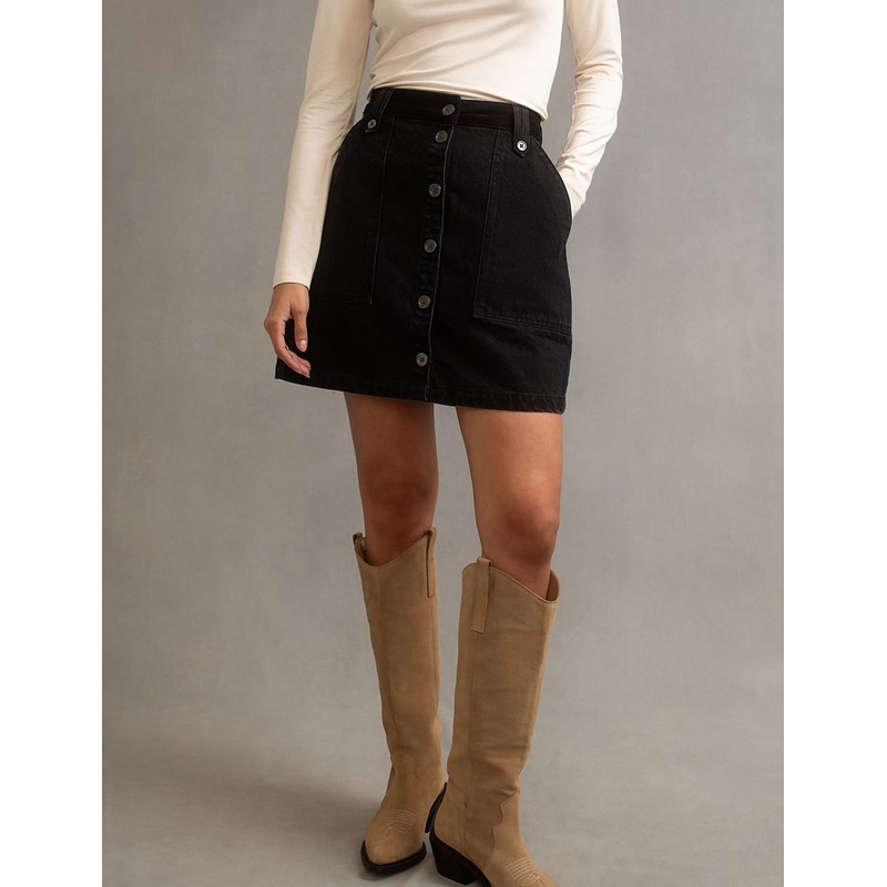 Be the first to review “Black Denim Button-Up Mini Skirt”