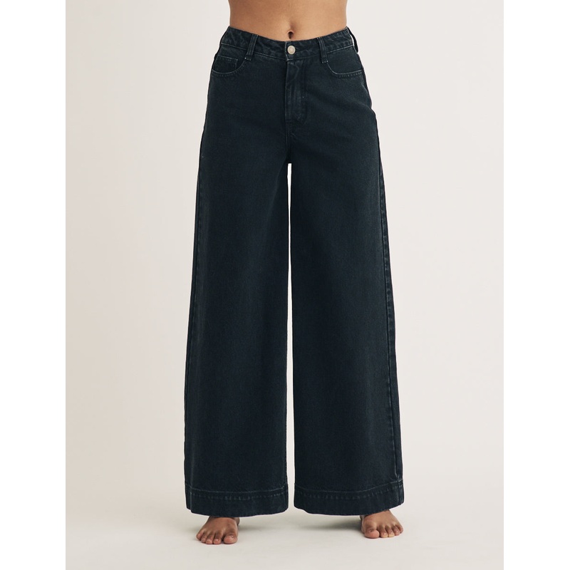 Make a statement. Designed to flatter, this style fits close to the body at the waist before relaxing over the hips. Were obsessed with the classic black colour. Team with your favourite white tee.Exaggerated wide leg cutClassic five pocket styleGun metal