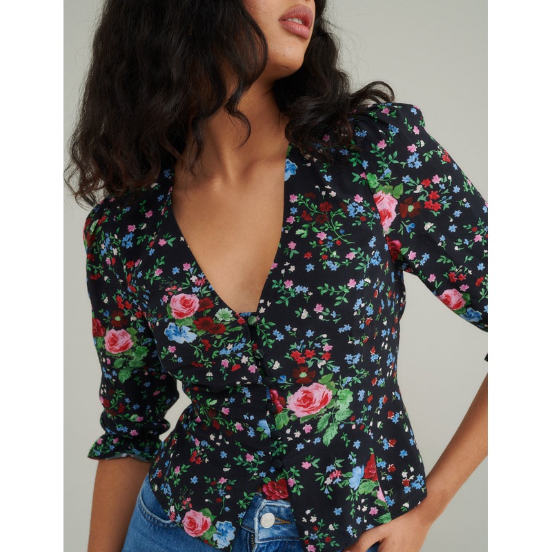 Our floral top is so easy to wear. We especially love the flattering v-neck and artful button down front. Shes fitted at the bodice to perfectly define the waist. Style with our matching skirt or your favourite NC jeans.