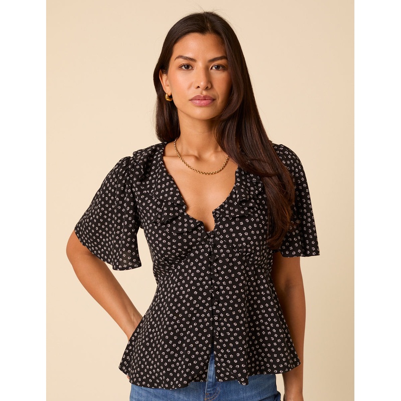 Collar Short sleeves Covered buttons Size tip: we recommend your usual size