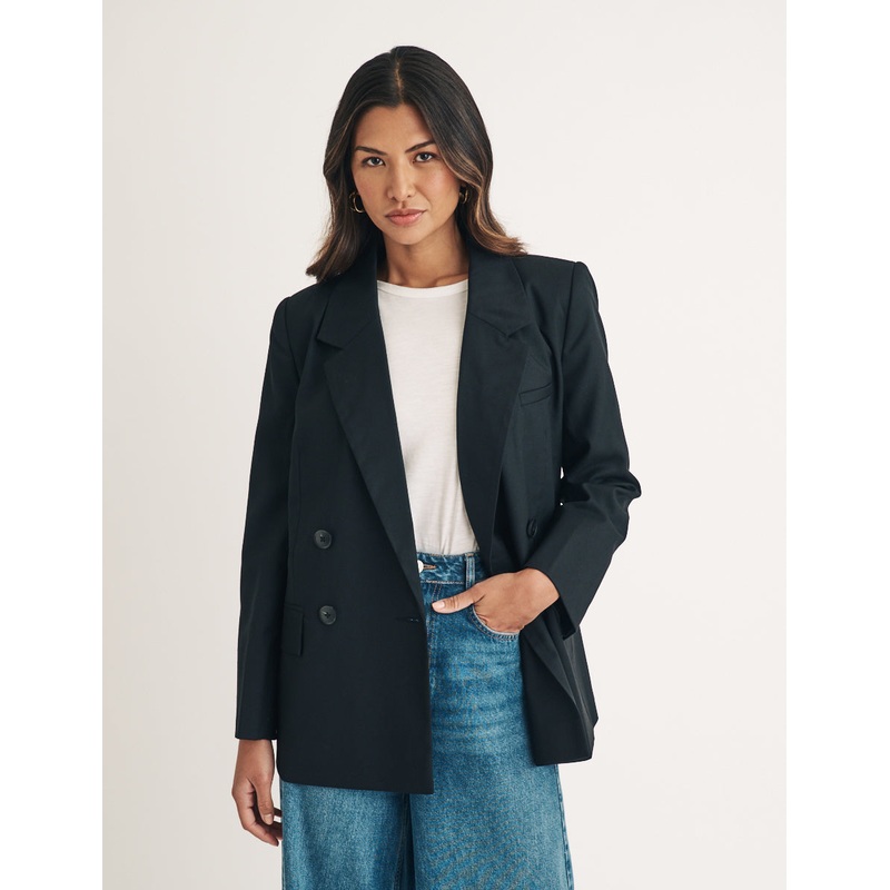 The perfect boyfriend blazer? We think so. We love the timeless notch collar, double-breasted front and covered buttons. Style it up with wide-leg jeans.CollarLong sleevesDouble breasted buttonsPocketsSize tip: For an oversized fit, we recommend sizing up