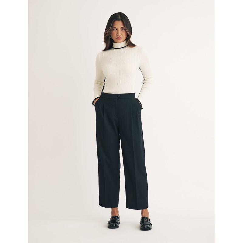 The cream of the crop. These timeless tailored trousers come in classic black. We love their pleated front and cropped length. Style with a cream knit and loafers for a so-now look.Belt loopsPocketsZip fastening with buttonDid you know this piece can be ta