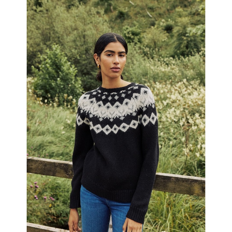 Were fawning over Fair Isle. This chunky classic black jumper is sure to keep you cosy. Dont miss the soft ribbed trims and classic crew neck. Wear with your favourite denim and finish with boots.Crew neckLong sleevesSoft ribbed trimsWe recommend folding y