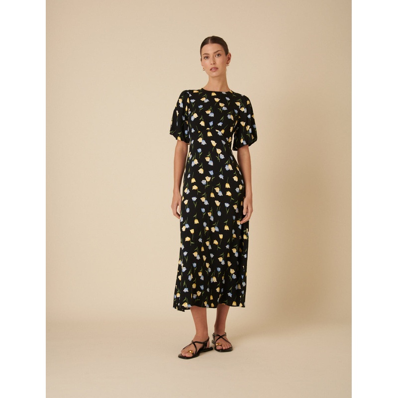 Weve taken everything you loved about Benita and made her a midi. This dark ditsy floral print dress will take you from day to evening in an instant. We love her puff sleeves and swishy skirt. Were wearing ours with sandals. Round neck Mid-length puff slee