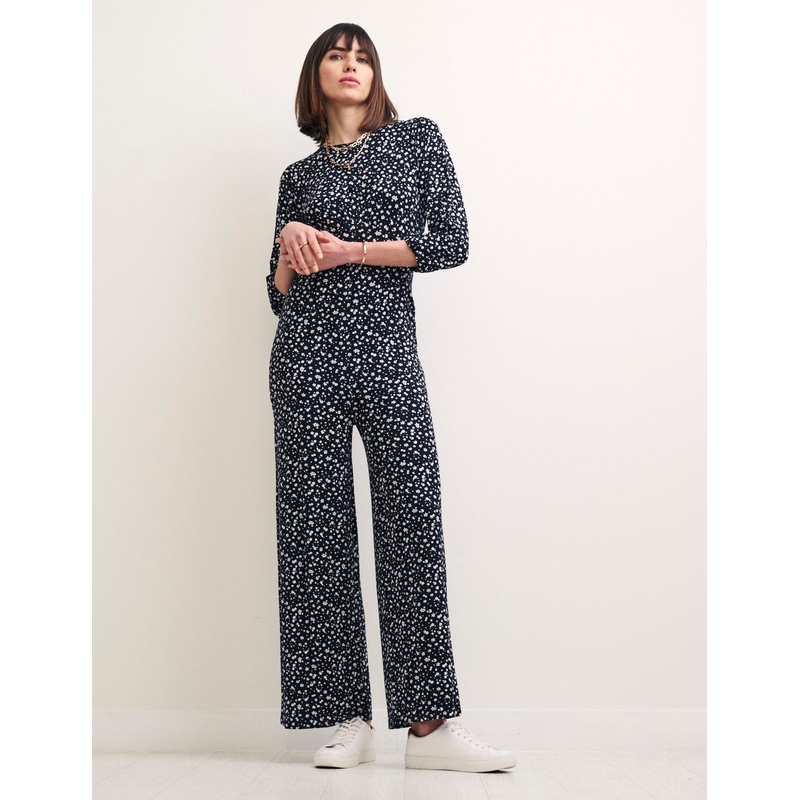 Framed by puff sleeves, Delta is a super pretty take on the classic jumpsuit with an easy wide leg cut. At the back she ties up into a bow. Were obsessed.Round neckMid-length puff sleevesUnder bust seams designed to flatterTie back detail
