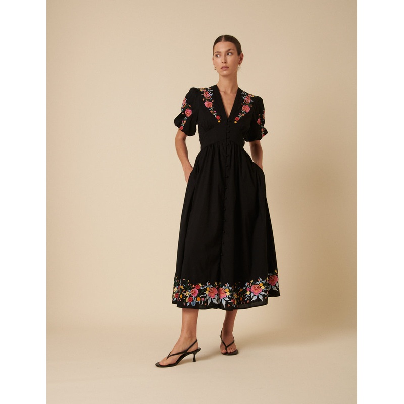 Black Floral Embroidered Starlight Midi Dress