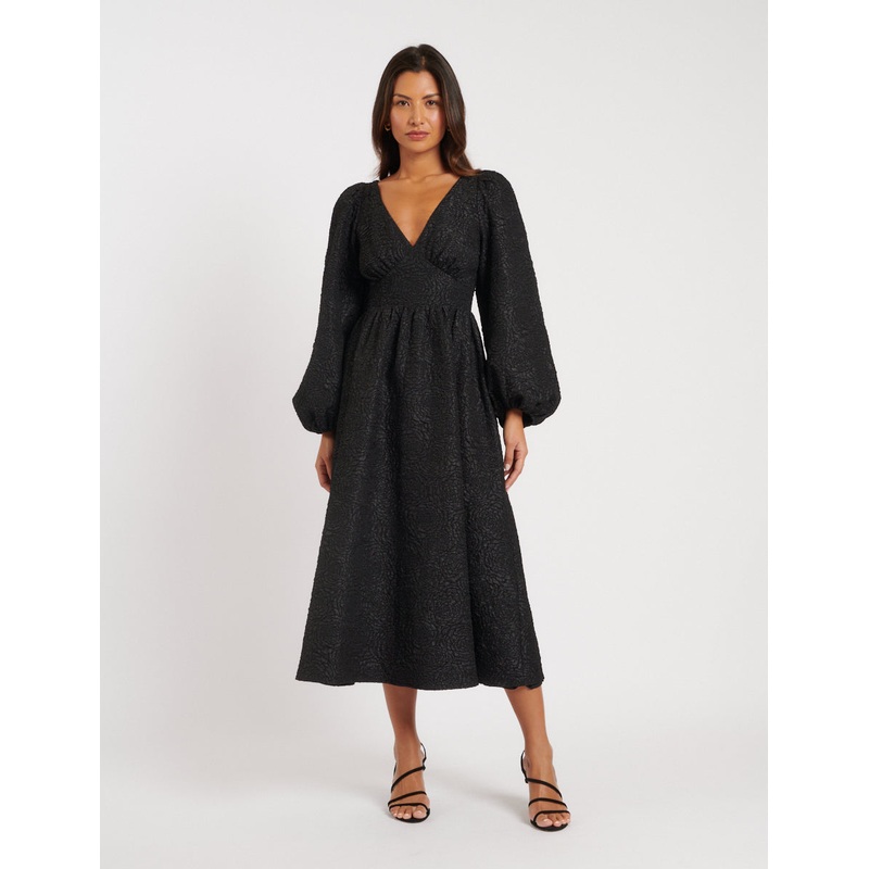 Black Floral Jacquard Midi Dress