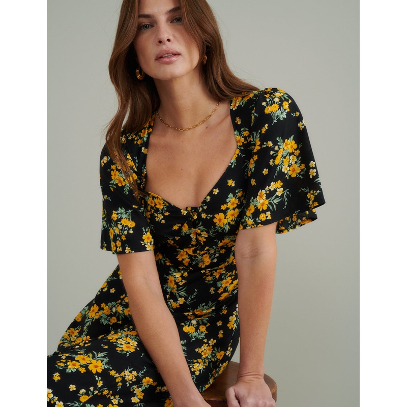 Meet Kimberly: a soon-to-be iconic style thats just joined the fold. Were obsessed with her floral print and sweetheart neckline. Her flattering fluted sleeves and pretty line of covered buttons will work for day or night dress codes. Were wearing ours wit