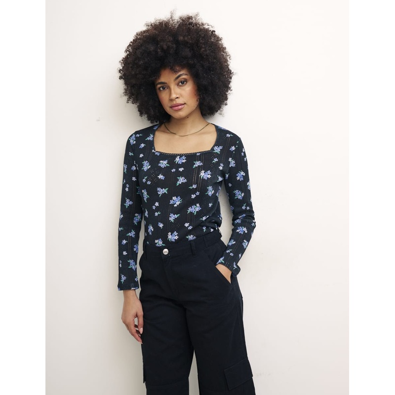 This top is the perfect layering piece but in a pretty pointelle print with a scallop trim neckline, we get why youd want to show it off. Itll work with everything jeans and midi skirts included but right now were obsessed with cargos.Square neckPointelle