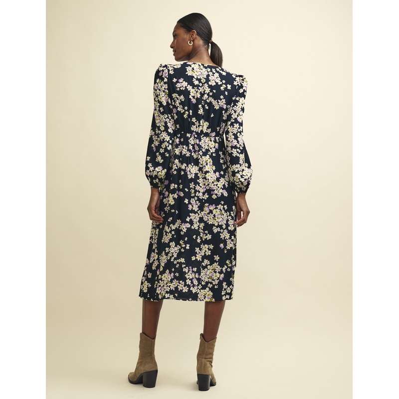Black Floral Long Sleeve Dee Dee Midi Dress