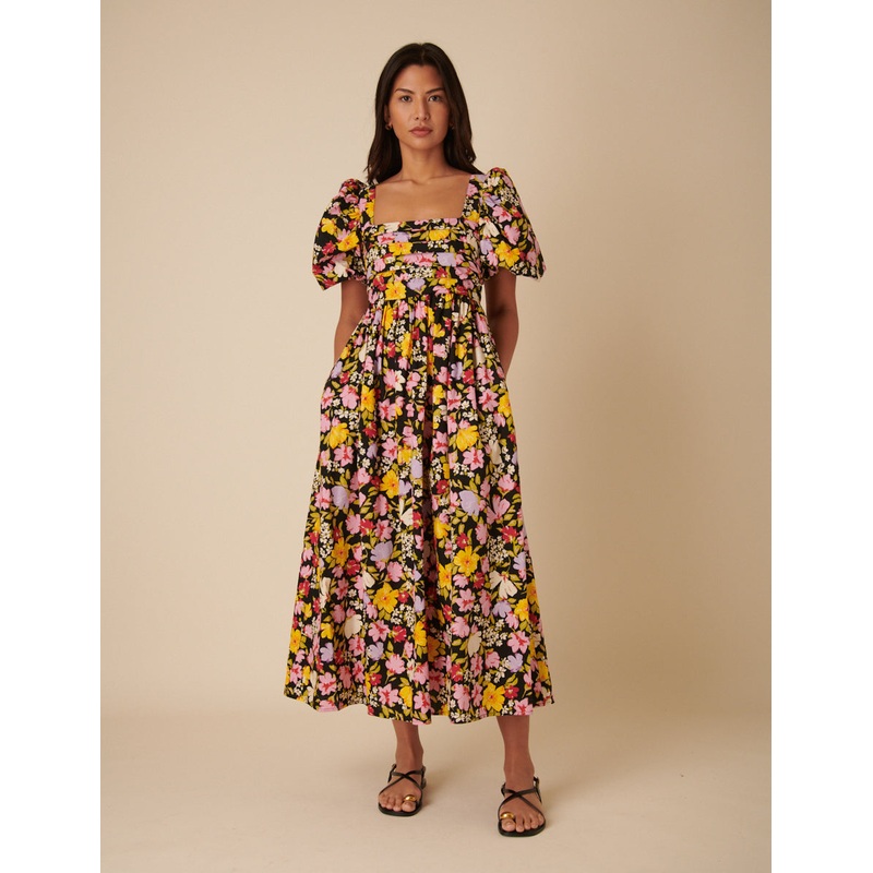 Square neck Short puff sleeves Shirred back Side pockets Size tip: we recommend your usual size