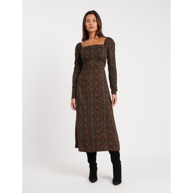 Fall for me. She flatters effortlessly with this seasons sought-after square neckline and a shirred back for an always perfect fit. The little tie that wraps around the back is a detail thats not to be missed. Elevate yours with a pair of Mary Janes.Square