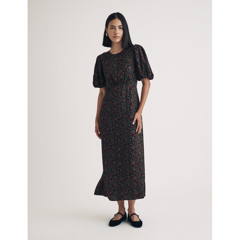 A new take on Tallulah. Decorated in a red cherry print, we think shes just what your wardrobes always wanted. Style yours with so-now Mary Jane shoes.Round neckMid-length puff sleevesCurved waist seamConcealed zip fasteningRelaxed skirt that skims the bod