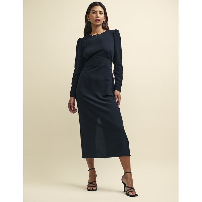 We just made the perfect black dress. This midi has been expertly cut with plenty of classic NC features: super subtle puff sleeves, a panelled waist and a low scoop back. Dont miss the elegant slit at the back. Style yours with barely-there sandals. Round