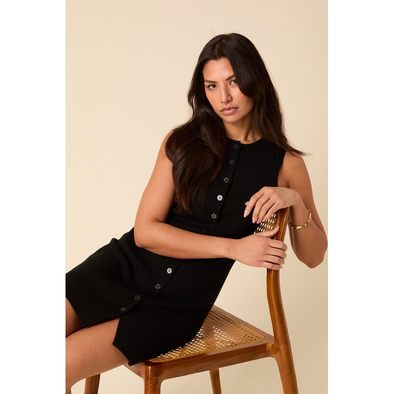 Our little black dress comes in a fitted mini silhouette with fine-knit detailing and a button-down front. Its perfect for day-to-night styling. Crew neck Button front Designed to be fitted Size tip: we recommend your usual size