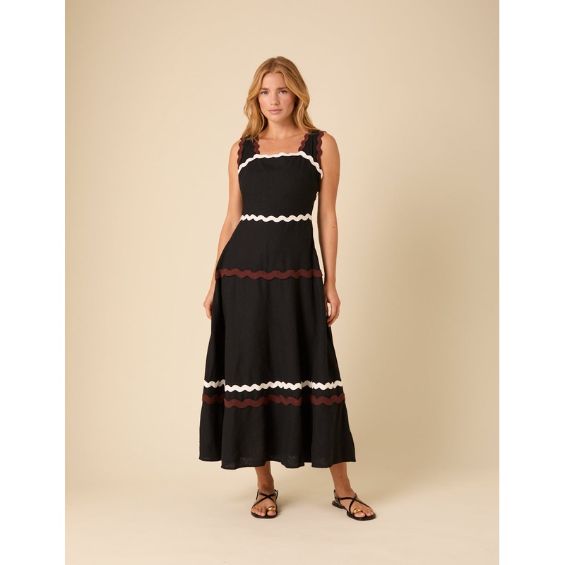 Be the first to review “Black Linen-blend Contrast Trim Acacia Midi Dress”