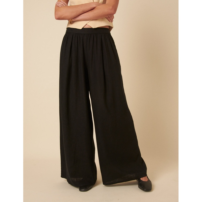 A new take on tailoring. Designed to flatter, our classic black pleated pair nips in at the waist and falls effortlessly to a relaxed wide leg. Wear yours with our matching top or a beige knit.Wide leg cutSide pocketsElasticated back