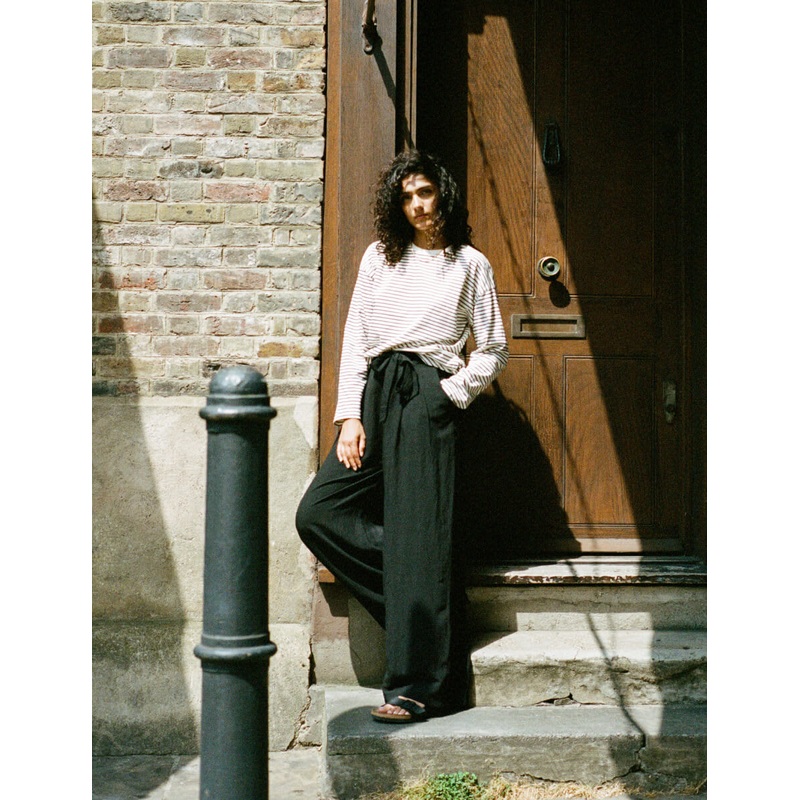 Perfect black paper bag trousers.This wide leg cut is endlessly flattering with a high tie-up waist. Style yours with a cute racer top and chunky slides.