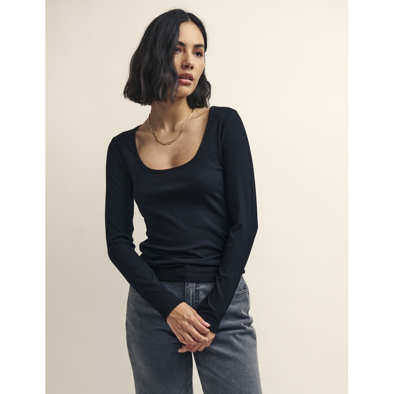 An essential. This black top is sure to be worn on rotation with long sleeves and a scoop neck thatll frame your favourite necklaces. Style yours with denim.Scoop neckLong sleevesRibbed textureSoft stretch jersey fabricDesigned for a close cut