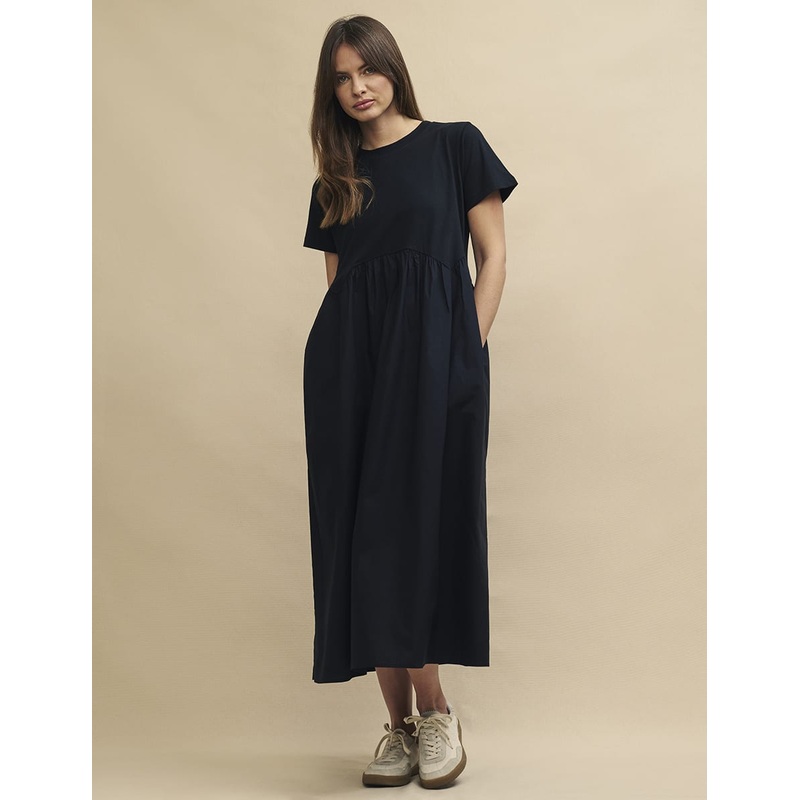 Your search for the perfect long black dress is over. This oversized smock is perfect for whatever youve got planned this summer. Style yours with trainers or boots. Were obsessed.Round neckJersey bodice with woven skirtShort sleeveOversized smock fitRelax