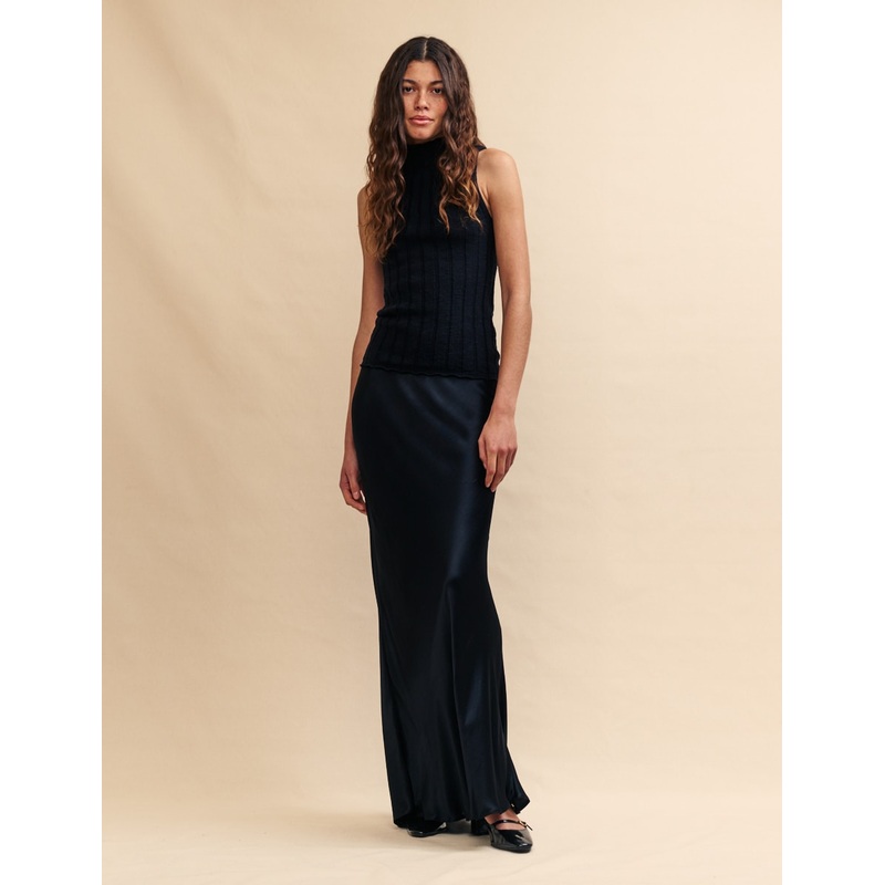 Introducing our Mila satin maxi skirt, now in a floor-grazing length. Shes a body-skimming cut that flares at the hem. Style yours with suede slip-on shoes.