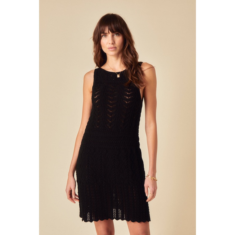 LBD, but crochet edition. This black swing mini dress is crafted from all-over crochet, giving it an effortlessly cool feel.