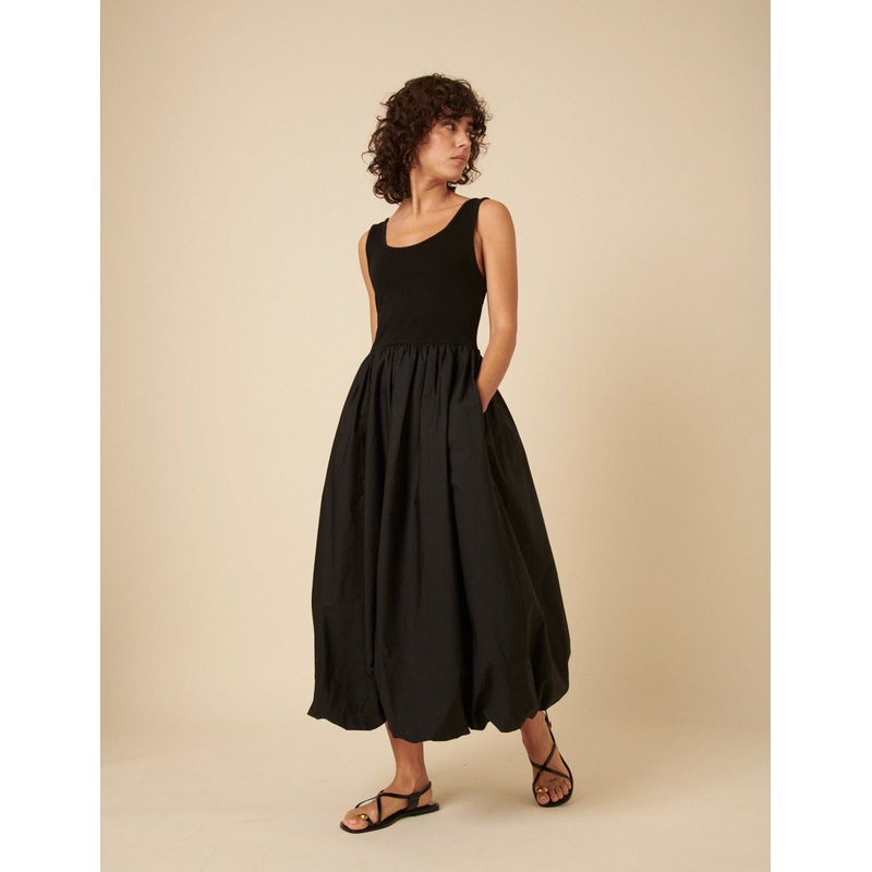 All day and night in Nancy. Coming in sleek black, we love the scoop neck and fitted bodice. She falls to an on-trend bubble midi skirt. Just add barely-there heels or sandals.