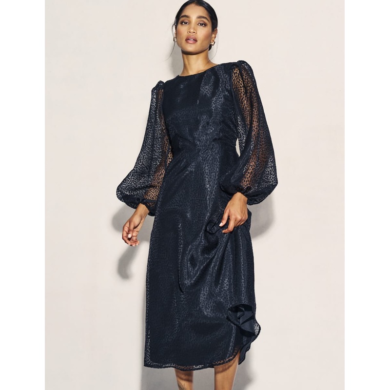 Round neck Long balloon sleeves Open back Lightly lined Size tip: we recommend your usual size
