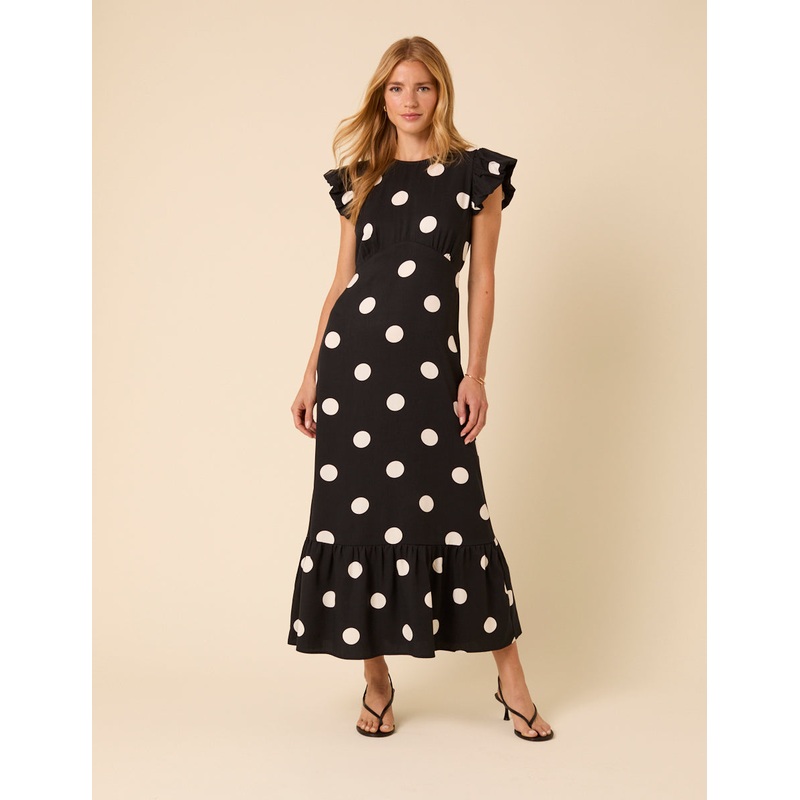 Polka dots, perfected. Our polka dot Clara dress features puff short sleeves and falls to an elegant midi. Crew neck Short sleeves Size tip: we recommend your usual size