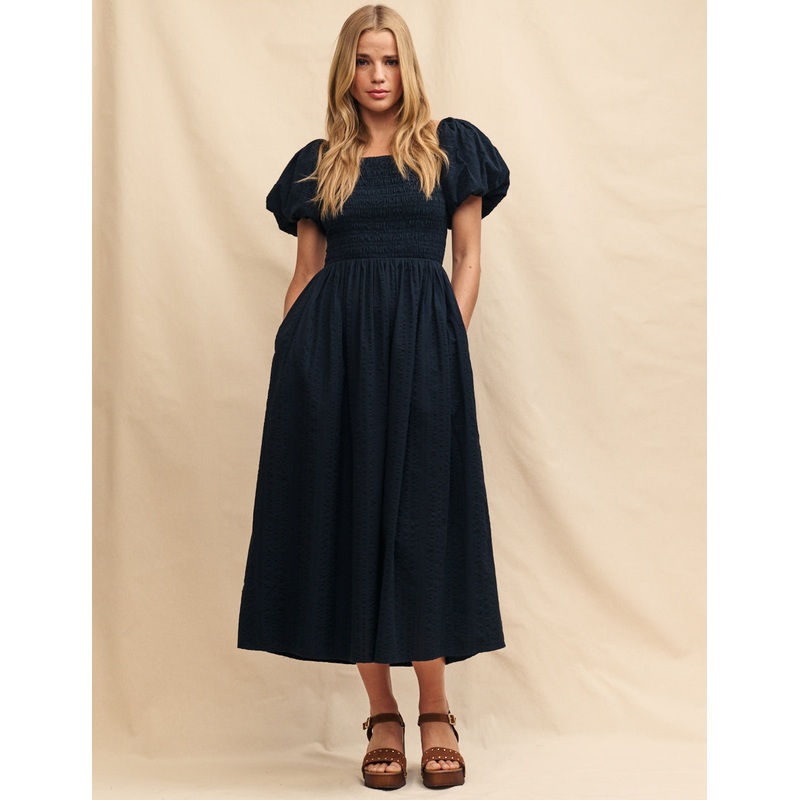 Theres no such thing as too many black dresses. Suraya is brand-new to our collection. Featuring a shirred bodice designed for comfort, dont miss the stylish short puff sleeves that are so-now. Were wearing ours with summer heels.